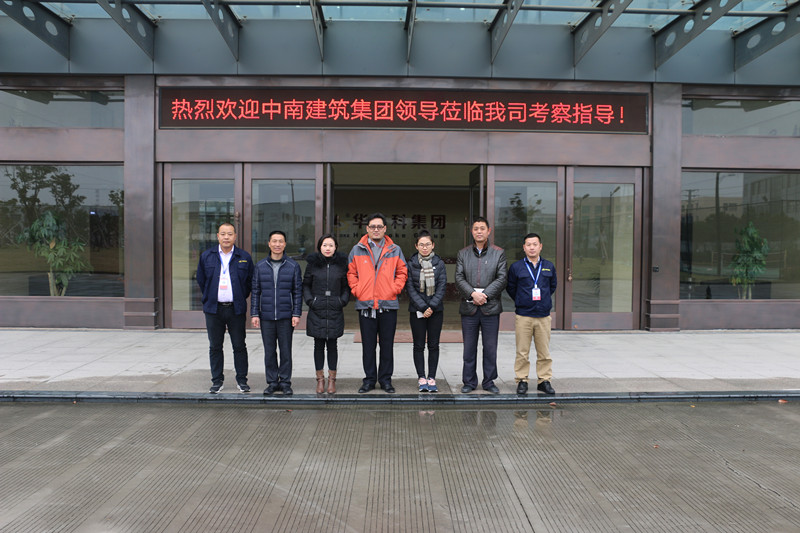 2017年12月16日上午,中南建筑產業集團考察組一行蒞臨我司考察指導。集團直營中心何總、集團運營中心羅總,余姚生產基地胡廠等領導熱情接待。